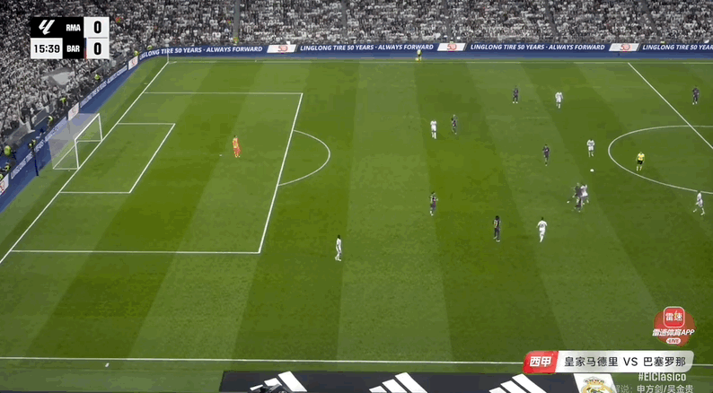 第14分鐘,姆巴佩禁區(qū)外世界波,裁判判定越位在先進(jìn)球無(wú)效,半自動(dòng)越位技術(shù)顯示姆巴佩體毛機(jī)越位